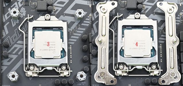 ▼安裝在Intel平台時,需使用灰色套管,其中一端孔洞直徑較大(圖左),另一端孔洞外