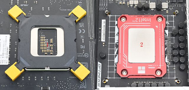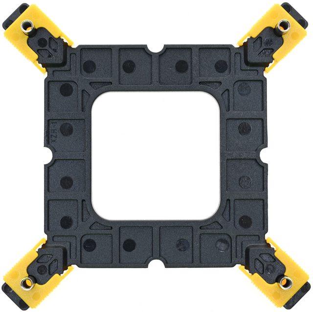 ▼對應LGA1700(左)及LGA1200/115x(右)的固定鎖點及黃色滑套配置示意圖