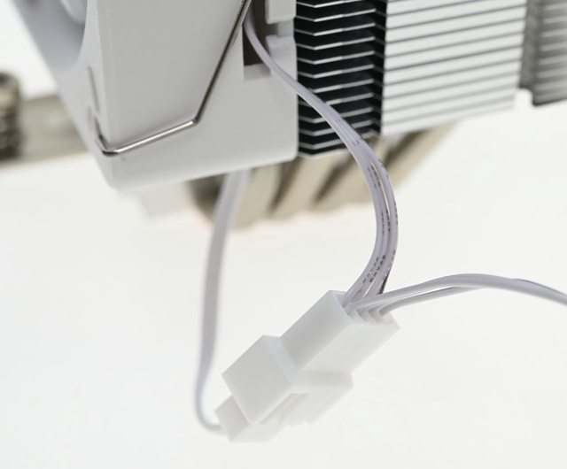 備9片乳白色鐮刀形扇葉及8片減震膠墊,採4pin PWM轉速控制。提供3年保固