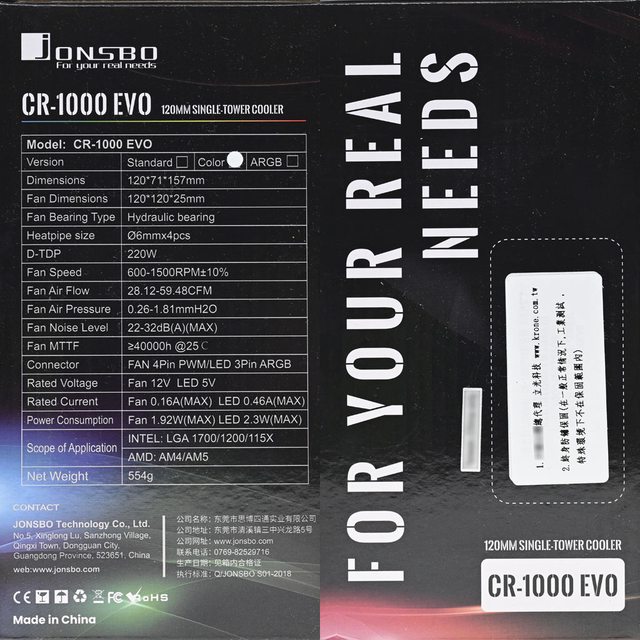 JONSBO喬思伯CR-1000 EVO散熱器支援Intel LGA 1700/1200/115x及AMD AM5/AM4平台,本