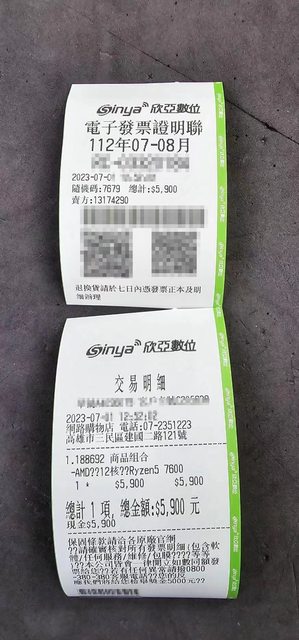 #註7/12起AMD CPU已漲價一些,不過我買的時候沒漲(下面有發票證明)