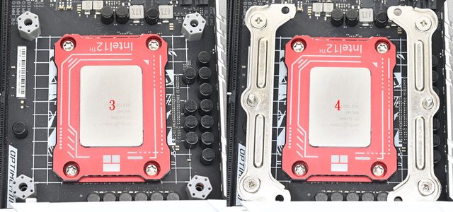 ▼安裝於LGA1700平台時,先將Intel背板調整成適用LGA1700平台配置,然後把背板4支固