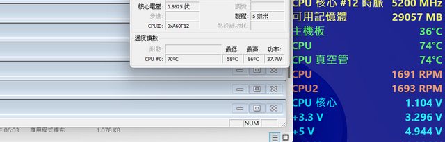 AVX/PRIME 95 測試最高溫度 86
