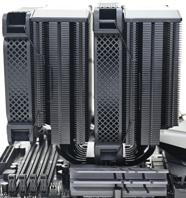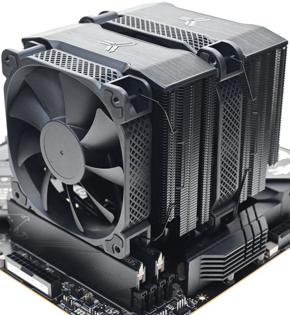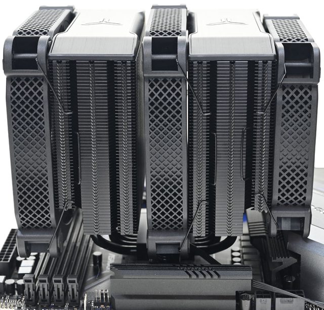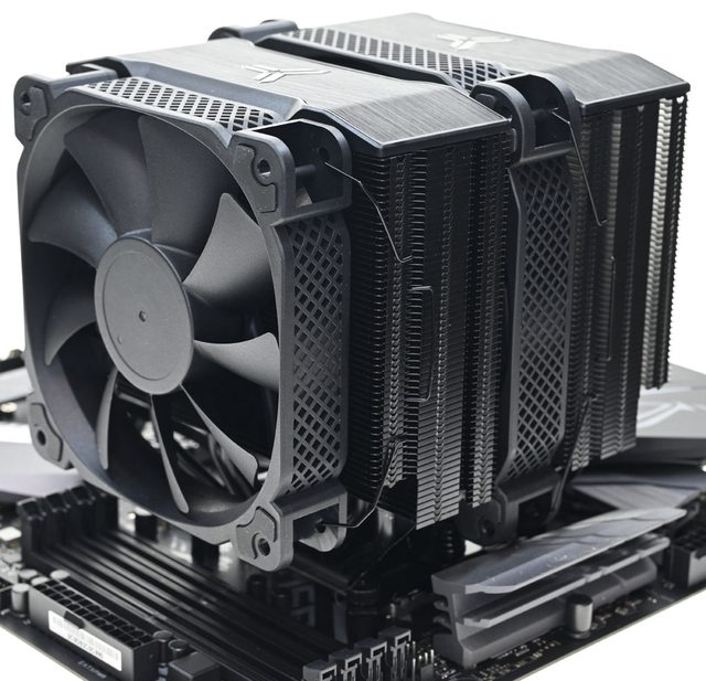 AMD AM5/AM4平台,高度160mm雙塔散熱器具備全黑外觀,頂部配置裝飾蓋,全銅處理器接