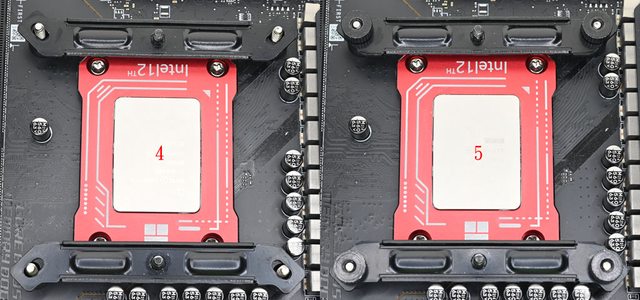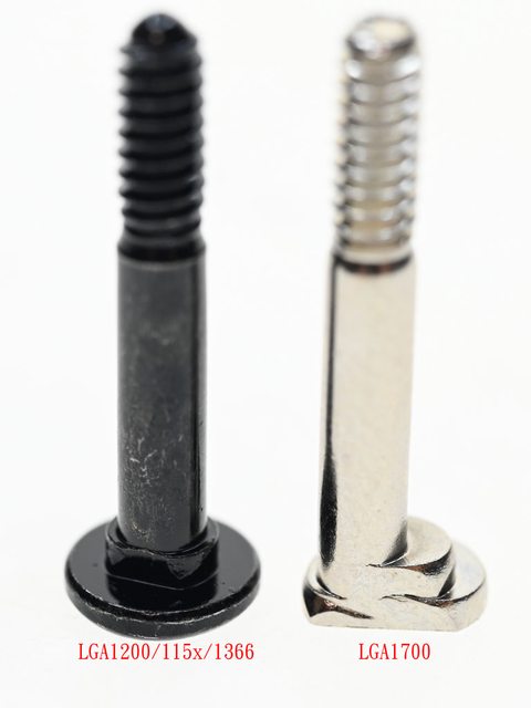 ▼黑色螺柱對應LGA1200/115x/1366(左),銀色螺柱對應LGA1700(右),螺柱底部凸起處造