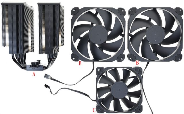 ▼包裝內容有散熱器(A)、140mm風扇(B)、120mm風扇(B)