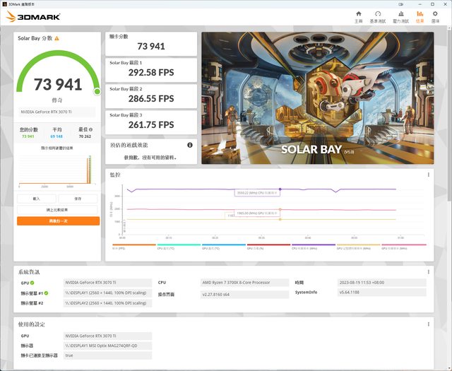 我自己用3070Ti+3700X大約才7萬分,不過是在Dev通道下會使用測試版驅動(545.37)所以
