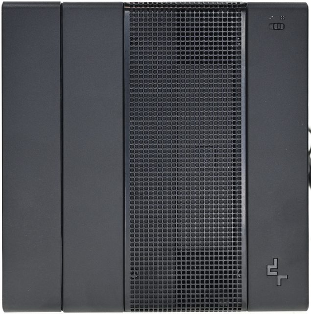 ▼散熱器頂部右上有模式開關,右下有商標。模式開關撥到2個方塊為靜音模式,撥到4個