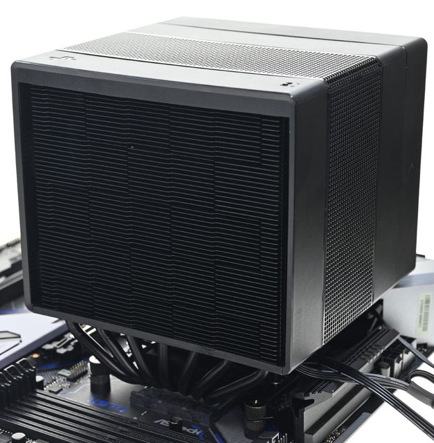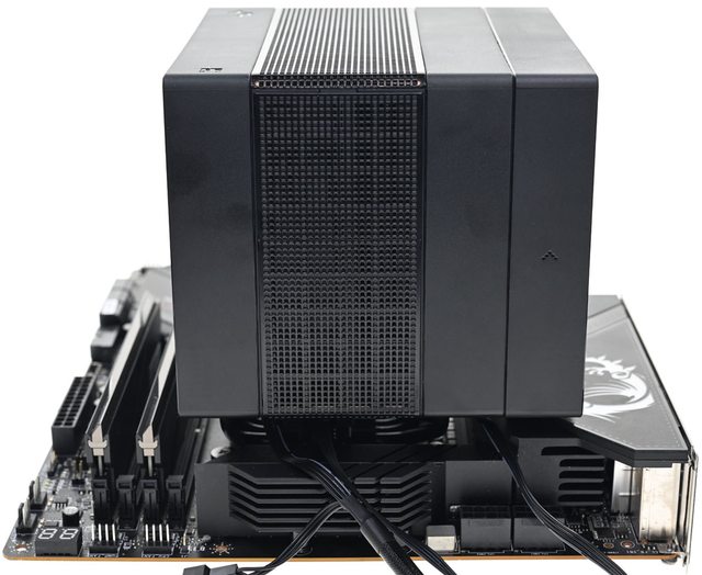 器採向後偏移設計,不阻擋前方記憶體燈光及拆裝,7支直徑6mm熱導管搭配52層雙塔黑化