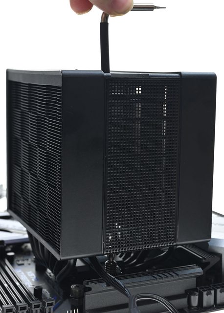 ,因採不對稱偏置設計,無法透過轉向安裝解決。散熱器前方可加裝12公分風扇,記憶體