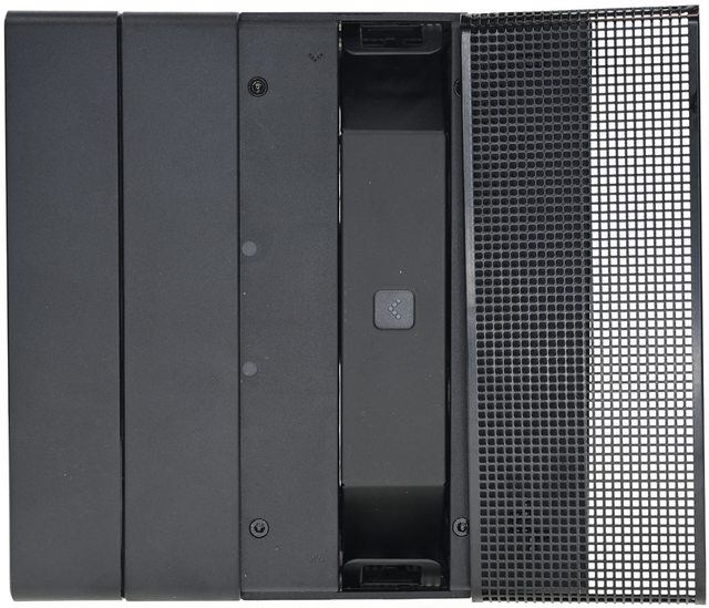 扇,打開頂部磁吸固定網孔蓋可快速拆裝中間140mm風扇,後方採卡榫固定的120mm風扇固