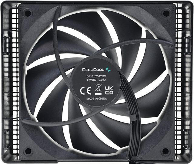▼安裝在固定框的後方風扇尺寸為120×120×25mm,採用FDB軸承和6極馬達,9葉片反向