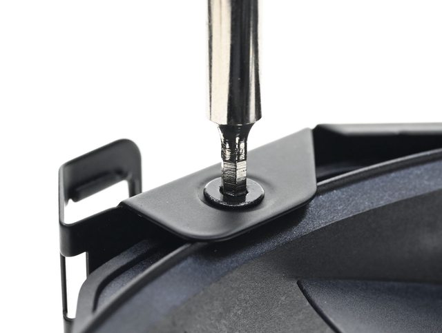 裝140mm風扇,散熱器後方120mm風扇固定框採卡榫固定,同樣可快速拆裝,並具備2段高