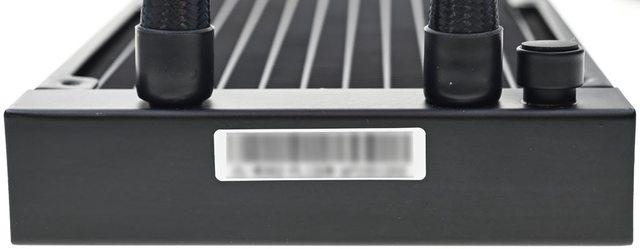 ▼鋁製水冷排尺寸396x120x27mm,進/出水管位於同一側