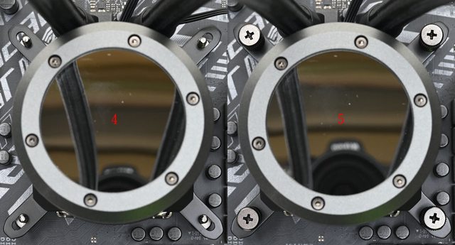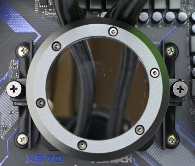 熱片發生干涉。確認完成後取下水冷頭,處理器表面清潔後塗上散熱膏,撕除水冷頭處理