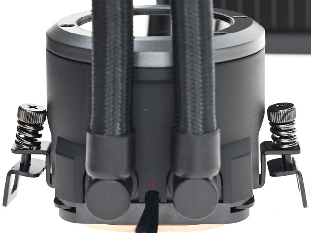 ▼水冷頭頂蓋外環為銀色,下方本體外殼為黑色