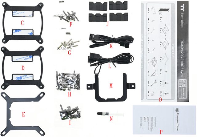 、風扇LED控制延長線(L)、AMD托架(M)、散熱膏(N)、安裝說明書(O)、保固說明(P)
