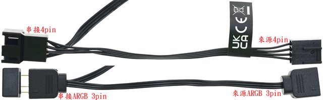 頭至來源4pin母頭間線路長度10公分。風扇至串接ARGB 3pin公頭線路長度7公分,串接