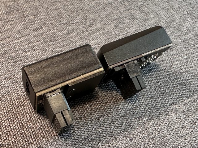 使用薄款外殼。180度轉向接頭則因為公、母頭都在PCB板同一側,所以背後適合搭配薄款