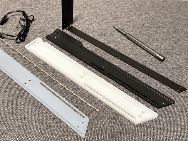 不過...因為這款支架採用硬條LED燈,電源接口角度也固定,無法直接改良。只能自己另