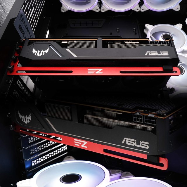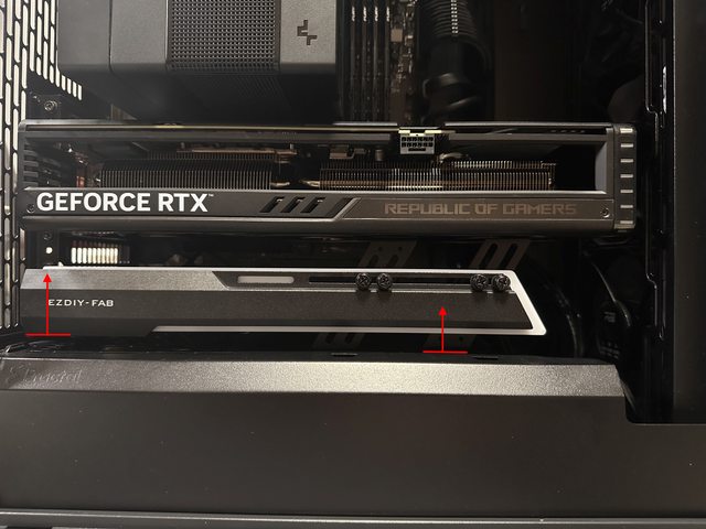 這款支撐架相較一般鎖PCI-E位置的長條狀支撐架優勢在於有兩個固定/支撐點,鎖PCI-E