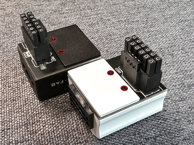 這裡暫以90度轉向接頭作示範,因受限於12VHPWR母頭的佔用空間,90度轉向接頭不適合