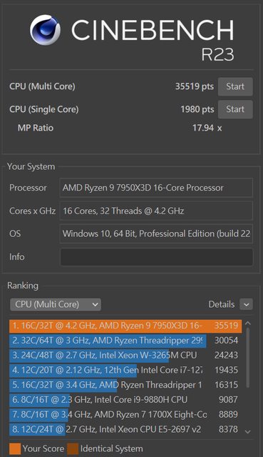 Cinebench R23 跑分19435 (待機31-35度,跑分最高溫75度)