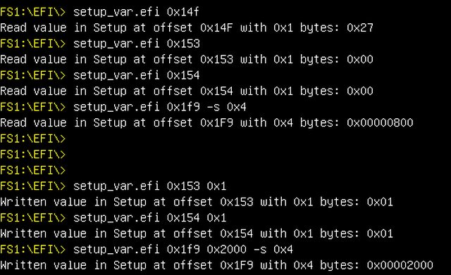 之前有印象可以在UEFI shell下更改BIOS設定,google之後真的有方法可以設定甚至是
