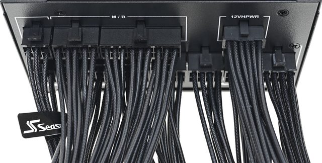 ▼模組化線組輸出插座有名稱標示,左下方有Seasonic商標,右下方有FOCUS字樣