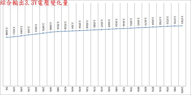 ○偏載測試,12V維持空載,測試3.3V滿載、5V滿載、3.3V/5V滿載的3.3V/5V/12V電壓變