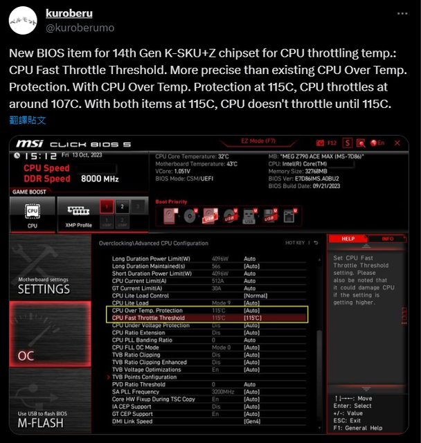According to kuroberu, the user who shared the Z790 ACE MAX motherboard screensh