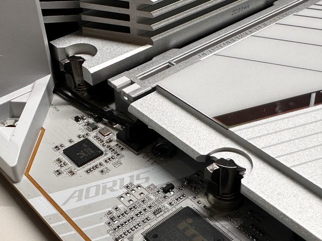 巨大鳥頭SSD散熱片的一側為EZ-Latch Click,另一側則為螺柱卡扣。