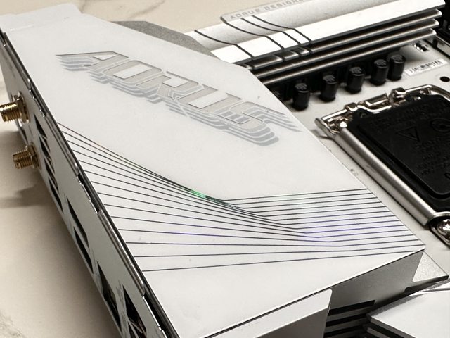 整個主機板只有IO區的堆疊AORUS字樣帶有RGB燈效,略顯低調。下方線條雖無RGB燈號但