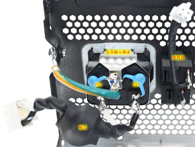○總開關控制輔助電源電路,不控制交流。交流電源線/磁芯/保險絲/突波吸收器有包覆