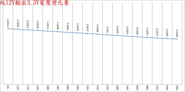 ○偏載測試,12V維持空載,測試3.3V滿載、5V滿載、3.3V/5V滿載的3.3V/5V/12V電壓變