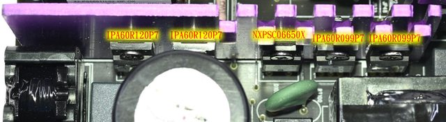 ○APFC/一次側MOSFET採用Infineon,APFC二極體採用WeEn,二次側MOSFET採用Nexperia