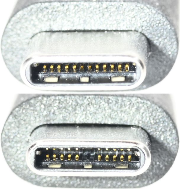 ▼USB-C連接器採用一體成形金屬外殼,內部針腳配置如下圖