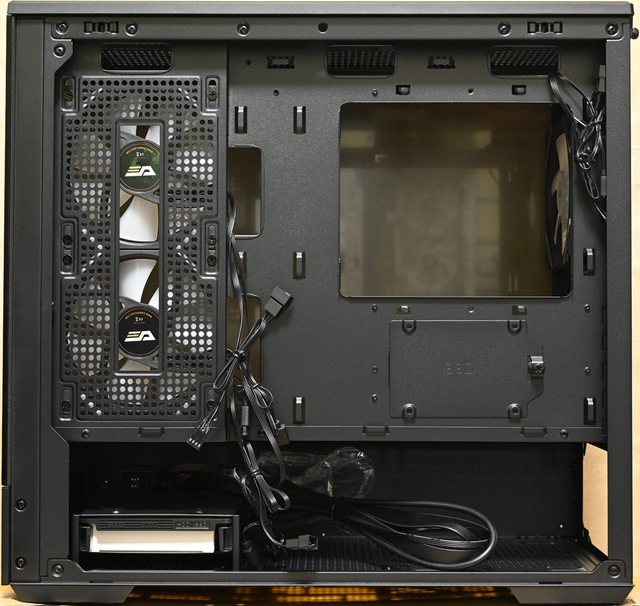 間。右側前方預裝2個反向ARGB發光120mm風扇,後方預裝1個ARGB發光120mm風扇,風扇線
