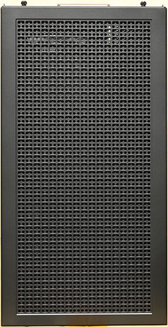▼右側板的右上有商標,配置高密度網狀通風口,採卡榫固定,拆卸免用工具,從機殼後