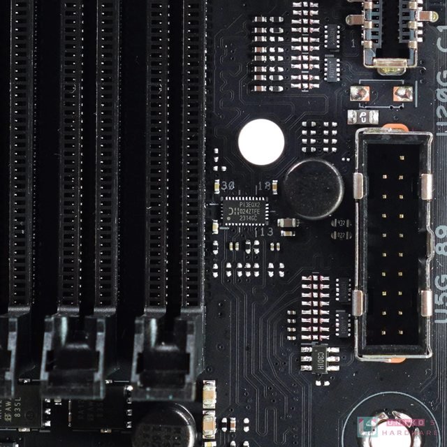 DIODES PI3EQX1014 是 1 顆雙 USB 10 Gbps 中繼器,負責增強由 Z790 晶片組至後置另 1
