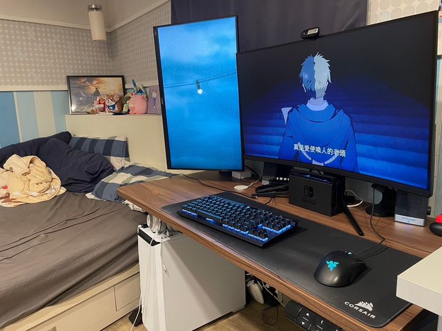 還要把其中一個螢幕夾上桌板,所以光決定線長跟打掃