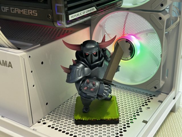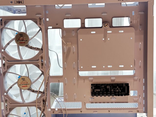 雖然機殼前方有一個斷崖(?)但滿適合拿來放手辦,離顯示卡熱源有一小段距離也有一顆