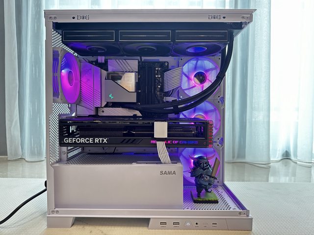 使用30cm長度以上的顯示卡尾部會蓋住中間風扇,些微影響風扇RGB效果。新鏡界側邊能