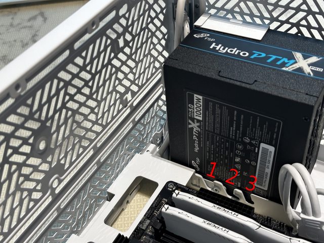 電源有3段安裝高度,使用240mm水冷可任選安裝位置,使用280mm水冷則只能使用2號安裝