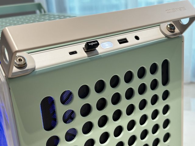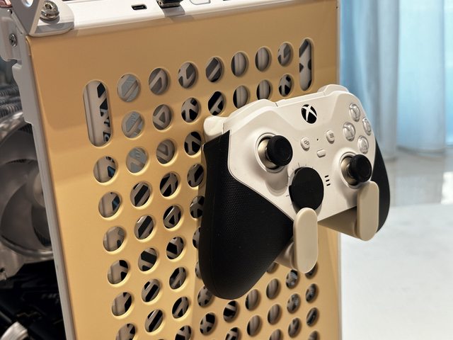 QUBE 500另外附了兩個掛勾配件,可安裝於洞洞面板上以擺放鍵盤、手把及耳機等周邊。