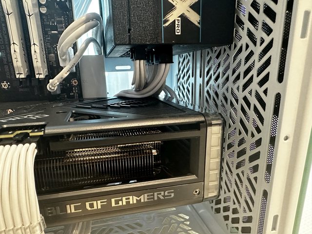 的ROG 4070RTi後,前方空間還夠安裝1顆標準厚度風扇,但建議在安裝顯示卡前就先安裝