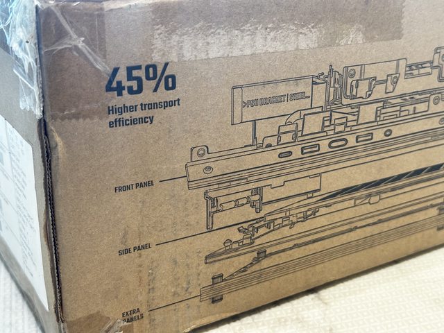 藉由將機殼全部零件拆開後平整堆疊,能減少號稱45%的包裝空間,實際測試包裝高度僅