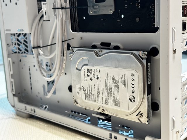 QUBE 500的硬碟安裝能力,前方底部及主機板後方各能以減震橡膠墊安裝一顆3.5"硬碟,