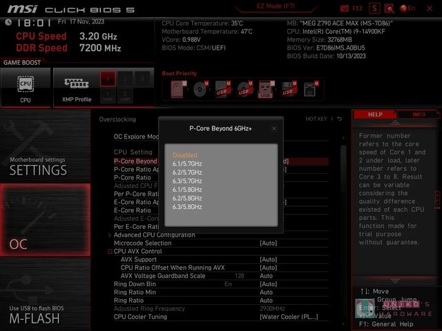 P-CORE 可以設定大於 6 GHz + 頻率設定,有多種組合可以選。