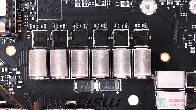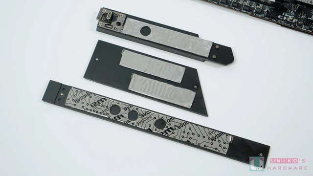 微星使用金屬裝甲遮掩底下的鋁擠式和鰭片式散熱片,並在表面加入可發光的 MSI 龍魂與